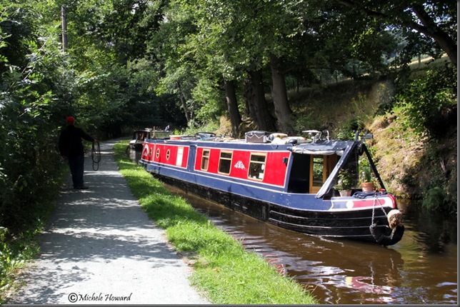 and Andrew falling in behind, sporting replacement cap purchased in Llangollen after the Canterbury Fishing hat was swept into the canal by an errant branch :(